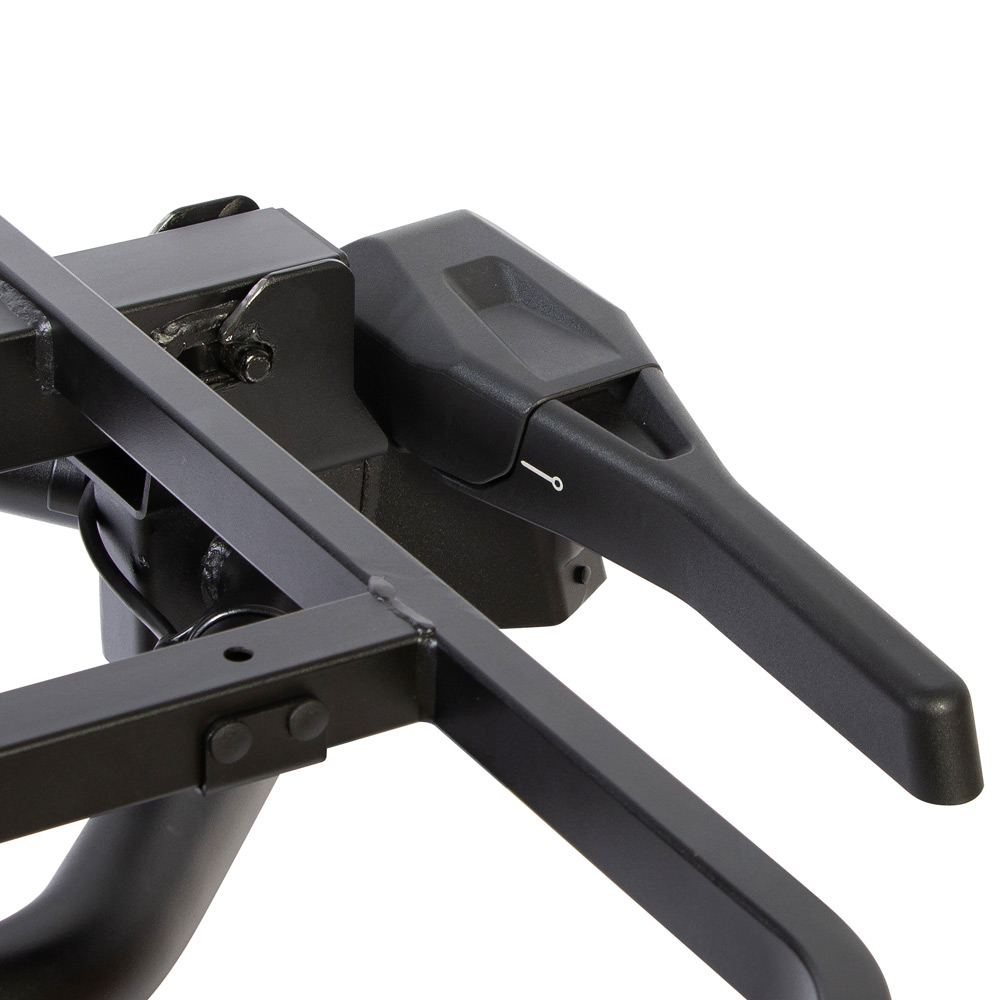 Система крепления Premium-Grip обеспечивает легкую, быструю и надежную фиксацию платформы на шаре фаркопа. Крепление мгновенно фиксируется на фаркопе нажатием рычага вниз. Красная ручка обеспечивает возможность регулировки, учитывая допуски на размеры фаркопа и позволяя оптимально закрепить платформу. Зеленый индикатор и справочные полосы на защитном кожухе указывают, надежно ли и безопасно закреплена платформа.