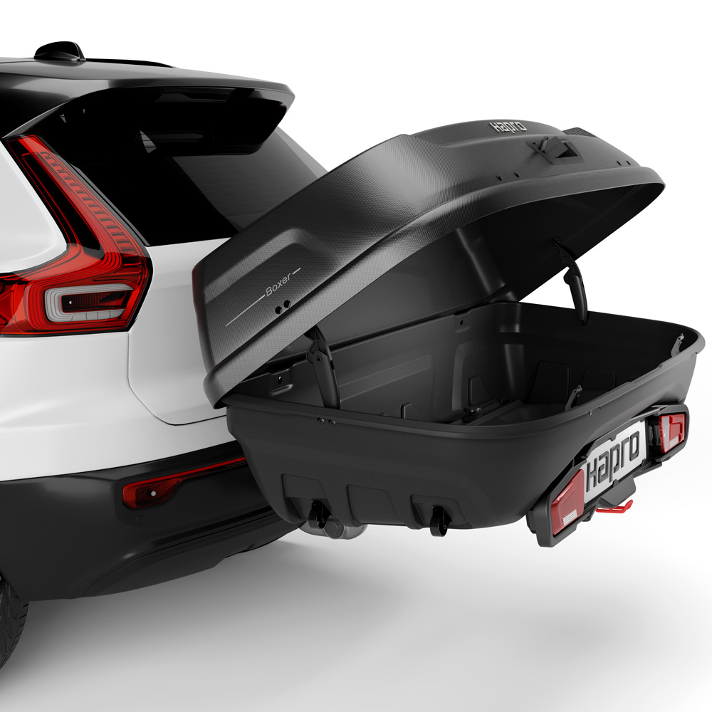 Автомобильный бокс на фаркоп Hapro Boxer L 420 Hexagon black, черный